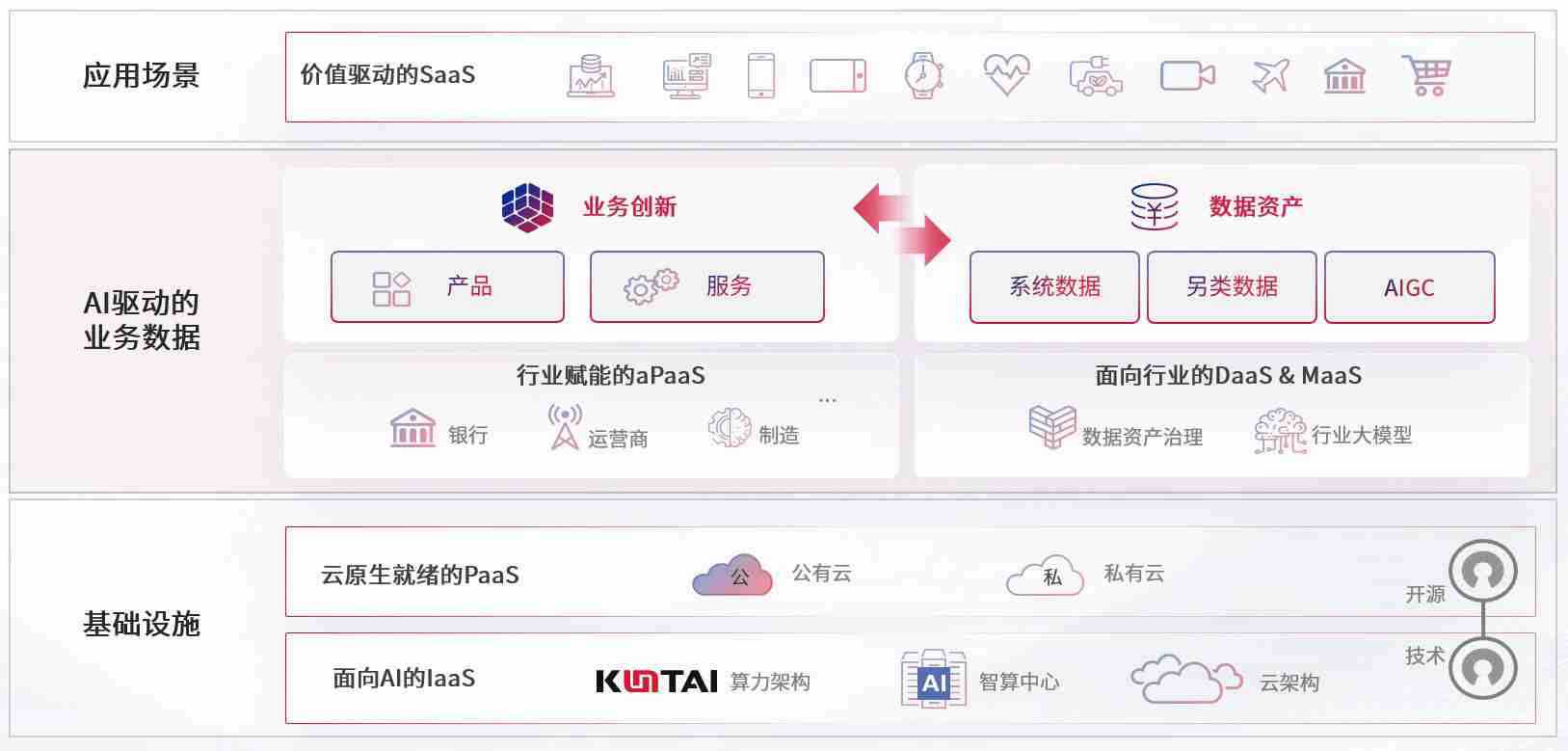 数字时代,,,,围绕企业数字化转型的关键要素,,98堂论坛数码开创性的提出数云融合战略和技术体系框架,,着力在云原生、、、、数字原生、、AI原生和信创产业上架构产品和服务能力,,为处在不同数字化转型阶段的快消零售、、汽车、、、、金融、、、、医疗、、、政企、、、教育、、、、运营商等行业客户提供泛在的敏捷IT能力和融合的数据驱动能力,,,构建跨界融合创新的数字业务场景和新业务模式,,,助力企业级客户建立面向未来的核心能力和竞争优势,,,全面推动社会的数字化、、智能化转型升级。。。